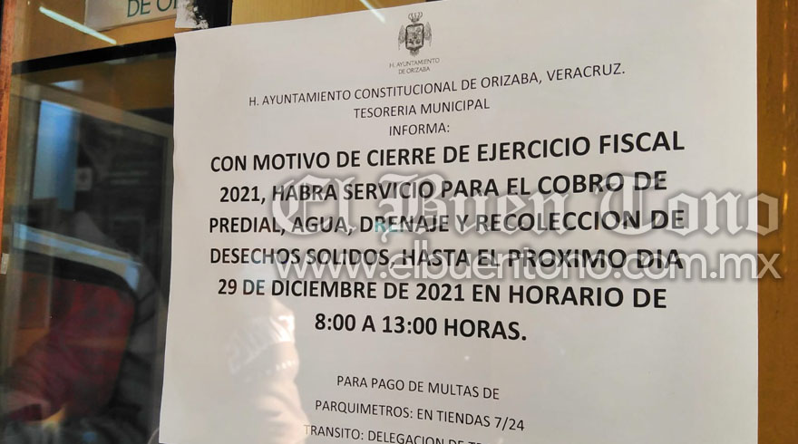 Orizaba. – El 1 de enero el cabildo orizabeño estará analizando la aprobación de los descuentos del 20 y 50 por ciento por pronto pago y el de adultos mayores, viudas y pensionados para que a partir del 3 de enero a las 08:00 horas se dé inicio el cobro.