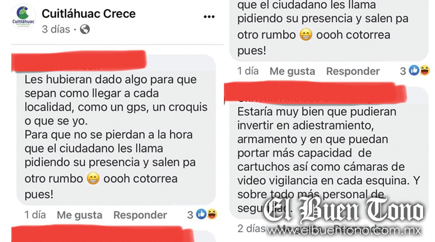 Por otra parte, sectores señalaron que es necesario una supervisión constante del personal para verificar que trabajan de la mejor manera, “deberían comprarles armas porque a la hora de una situación de riesgo ¿con qué se van a defender? ¡Con piedras!”, posteó un habitante.