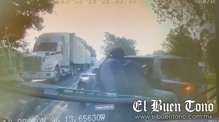 Tres Valles.- Encapuchados y armados, delincuentes hasta el momento desconocidos se burlan de las autoridades policíacas locales y estatales. Mediante un vídeo que circula en las redes sociales, se muestra como al menos cuatro hombres armados que viajan en una camioneta de lujo, privan de la libertad al conductor de un camión que transportaba abarrotes y se lo roban, esto durante la mañana de este martes en la carretera federal.