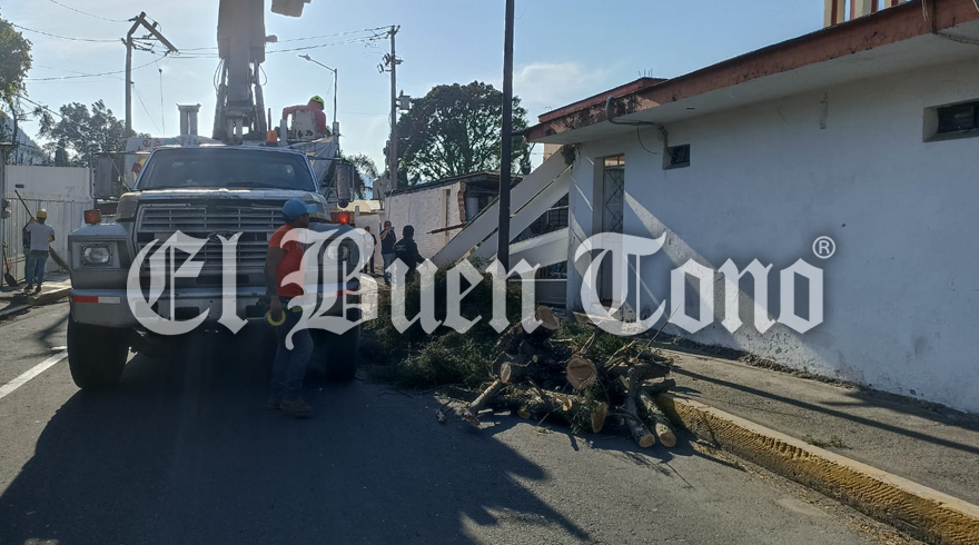 Personal del área de Parques y Jardines se encuentra realizando las labores del retiro de las ramas, además el derribo del mismo provocó la caída de una barda.