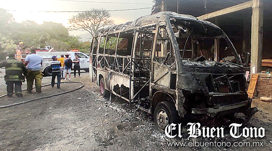 CIUDAD MENDOZA.- Un minibús de transporte urbano se incendió y quedó calcinado, cuando se encontraba estacionado en el interior de un aserradero, ubicado en la colonia Unión Moderna.