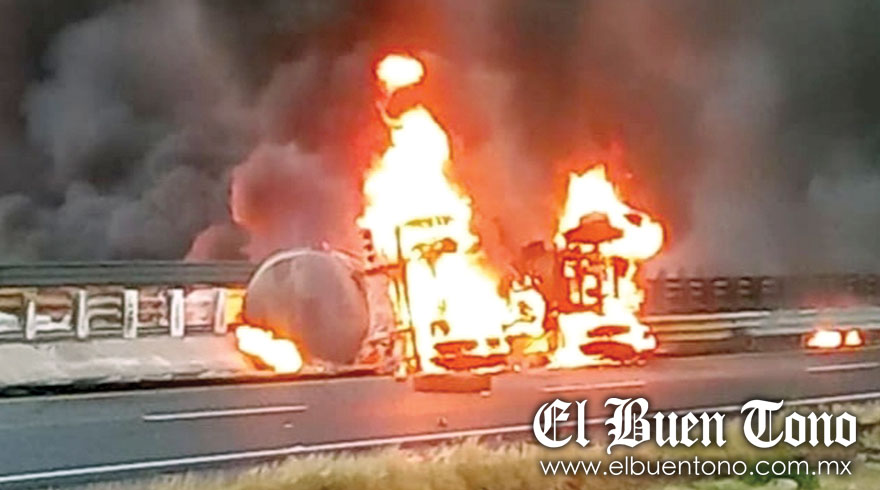 Según parece el chofer perdió el control del volante y la pipa volcó sobre su costado izquierdo, y fue una fuga de combustible lo que hizo que ardiera en llamas rápidamente, aunque el conductor logró ponerse a salvo.