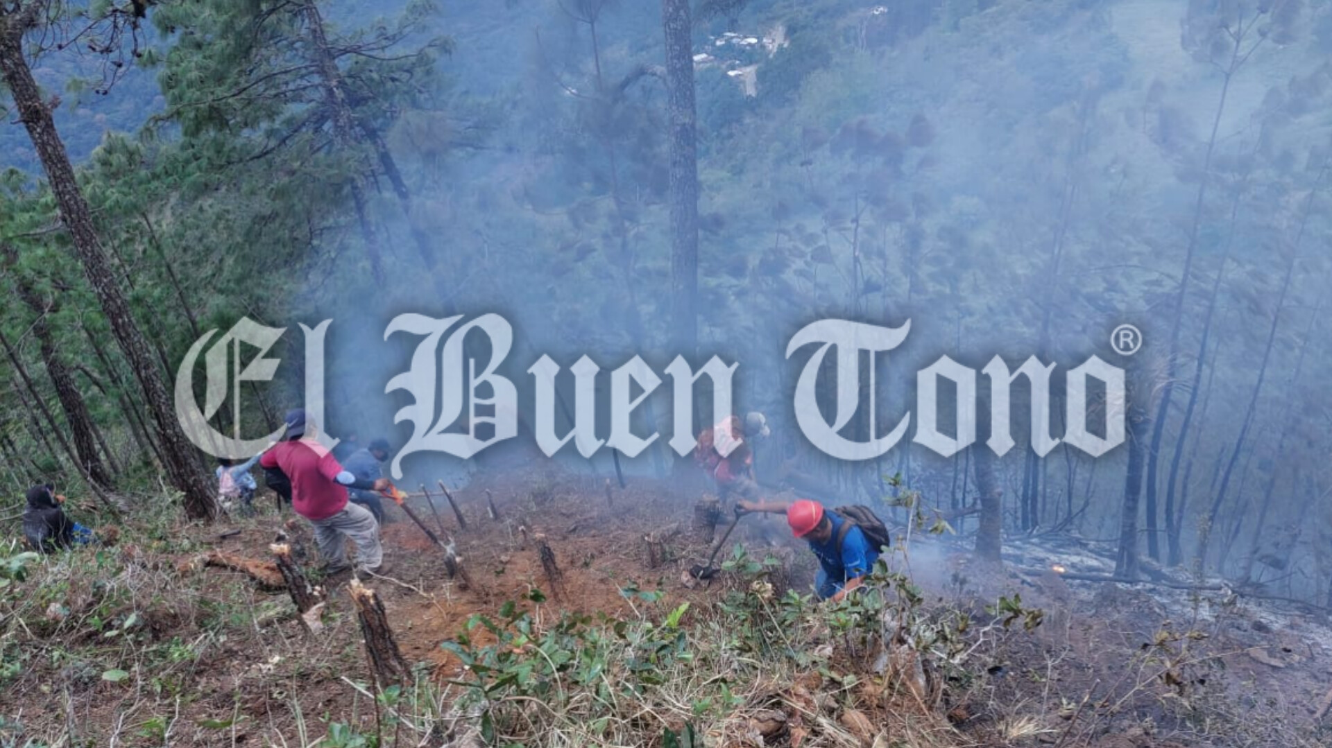 Aquí participan 290 personas quienes con herramientas combaten el incendio que sigue activo a muy bajo nivel.