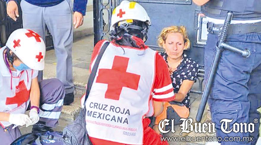 Con heridas en los antebrazos fue como llegó María “N”, de 35 años, afuera del Palacio Municipal donde pidió el apoyo de la Policía Municipal para que pudiera ver a su hijo, por lo que fue auxiliada por paramédicos de la Cruz Roja.