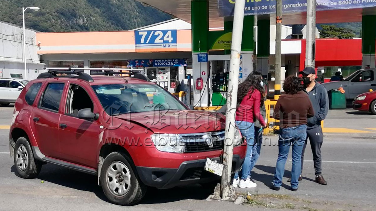 Río Blanco.- La mañana de este lunes, una mujer que salía de una gasolinera que está ubicada sobre el bulevar de la avenida Camino Nacional, chocó de frente contra un poste de alumbrado público que está justo en medio de la carretera.