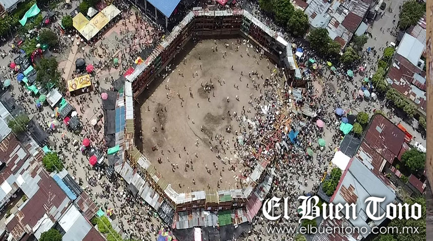 Imágenes divulgadas en redes sociales muestran el momento en que la gradería colmada de público se desploma durante una “corraleja”, una clase de fiesta popular en la que el público baja a la arena para enfrentarse a novillos o toros pequeños.