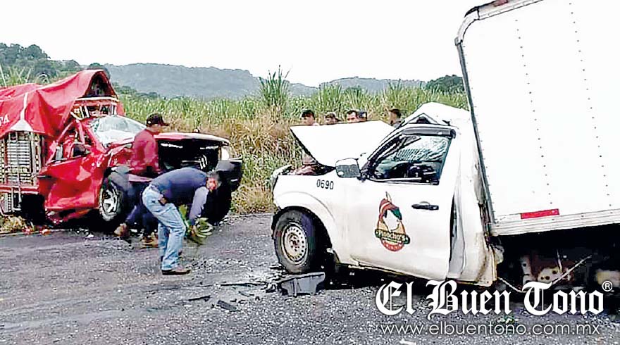 Los vehículos involucrados son una camioneta blanca, con caja seca del mismo color, número económico 690, razón social Pinocho’s; la otra es una camioneta roja, tipo estaquitas, la cual transportada frutas y verduras.