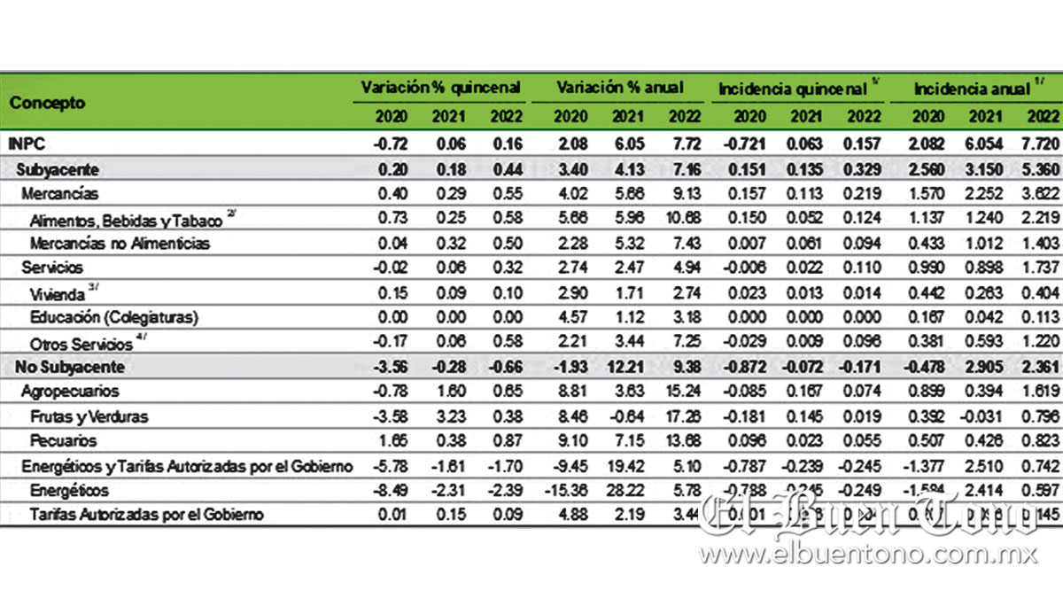 El INEGI reveló las cifras que durante la primera quincena de abril entre 2022 y 2022, las mercancías de 2.252 a 3.622; en el caso de alimentos bebidas y tabaco pasó de 1.240 a 2.219; en cuanto las colegiaturas del 0.0 42 al 0.113.