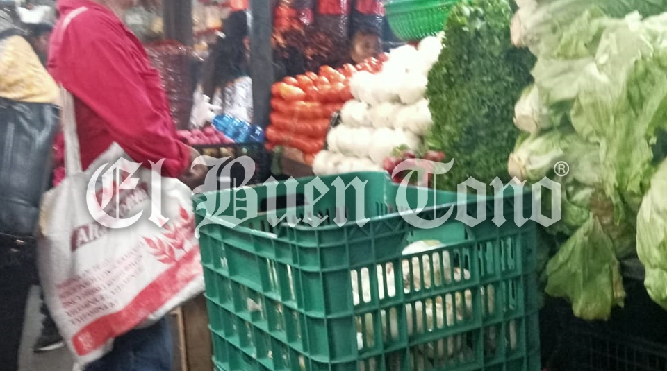En un recorrido por el mercado Revolución se encontró que el kilo de jitomate está en 43 y hasta 50 pesos, mientras que la cebolla está en 38 pesos, cuando a inicio de mes se ofertaba en 22 y 20 pesos el kilo respectivamente.
