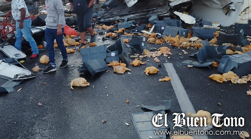 Es de mencionar que, los pollos que llevaba la pesada unidad, quedaron regados, al igual que los jitomates que llevaba la camioneta que fue embestida por el tráiler, por lo que la gente “ratera” se llevó la mayoría de la mercancía.