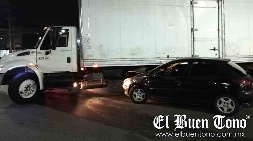 Córdoba.- Un imprudente conductor de un camión de carga, provocó que una pareja que viajaba en un automóvil se estrellara contra él, tras cruzarse sin precaución el bulevar Córdoba-Peñuela, en la Zona Industrial.