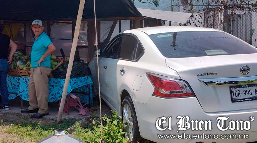 Coscomatepec.- Un automóvil que circulaba a exceso de velocidad en la carretera federal Fortín-Huatusco, terminó estrellado contra un puesto ubicado cerca de la localidad de Dos Caminos.