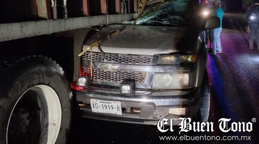 Cuitláhuac. – Una camioneta terminó incrustada detrás de un camión cañero, sl no guardar su distancia vial cuando circulaban sobre la calle 10, en la colonia 30 de abril.