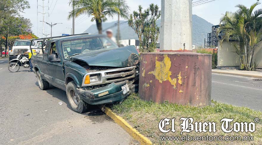 Una posible falla mecánica en la dirección hidráulica provocó que una camioneta pickup, color verde, placas XP7593A, se impactara contra un poste de la Comisión Federal de Electricidad.