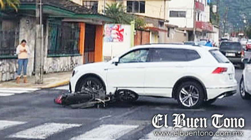 El accidente ocurrió ayer a las 11:00 horas, cuando un joven de aproximadamente 35 años, viajaba a bordo de una moto marca Italika, color negro con rojo, matrícula del estado de Veracruz, sobre la Oriente 9, en dirección al Mercado Zapata.