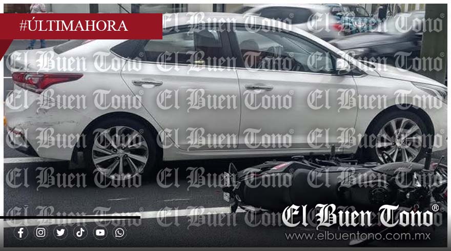 Orizaba.- Un motociclista resultó lesionado al estrellarse contra un automóvil en la Oriente 6, justo afuera del supermercado Soriana Centro.