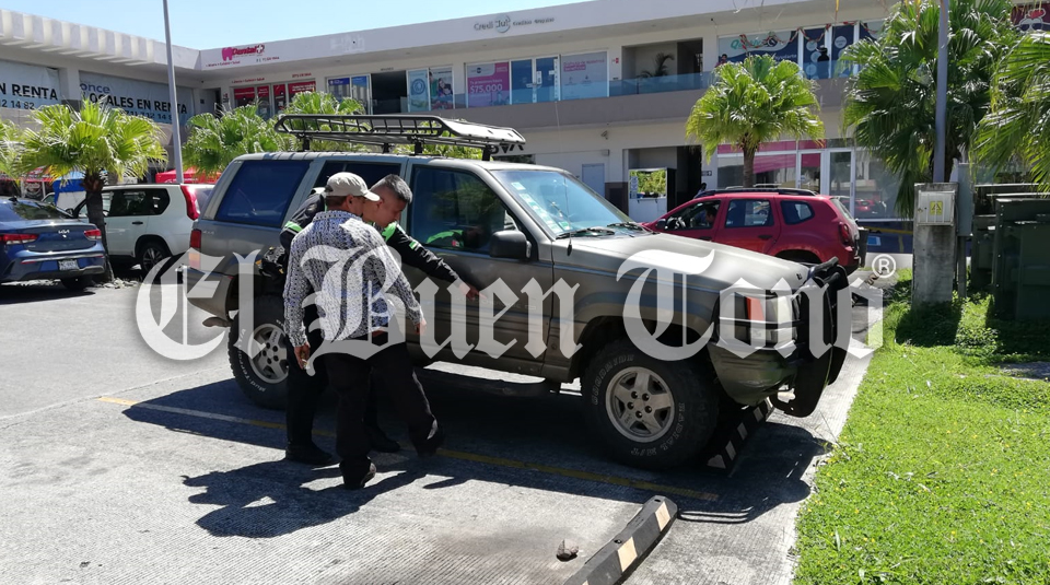 Córdoba.- Un empleado de una financiera resultó con raspones en la pierna izquierda, al estrellarse contra una camioneta que se metió al estacionamiento de Plaza Once, ubicado en la calle 13 y avenida 11.