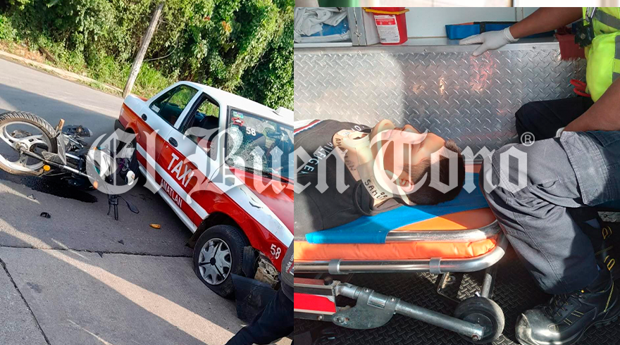 Amatlán.- Dos personas que iban en una motocicleta resultaron lesionados la mañana de este miércoles, al chocar contra un taxi de Amatlán, marcado con el número 58, el cual se le cruzó al circular sobre la carretera federal Córdoba-Veracruz, a la altura de Rancho Trejo.