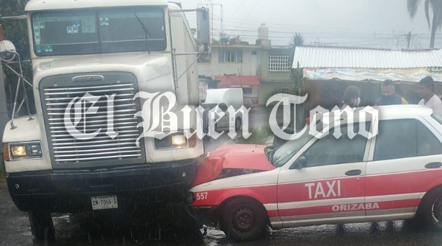 Rafael Delgado.- Un aparatoso accidente se registró la mañana de este martes la entrada a la localidad de San José Jalapilla, luego de que un taxi se estrelló contra un camión de volteo, aunque afortunadamente no hubo heridos.