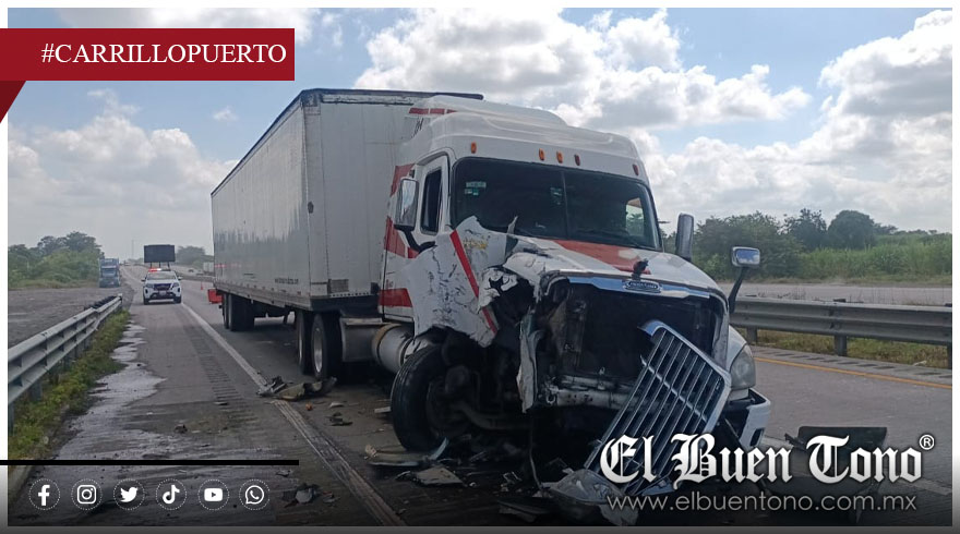 Carrillo Puerto.- Un tráiler quedó dañado de la parte frontal, al impactarse por detrás de una pipa, en la autopista Córdoba-Veracruz, a la altura de la comunidad de El Mirador.