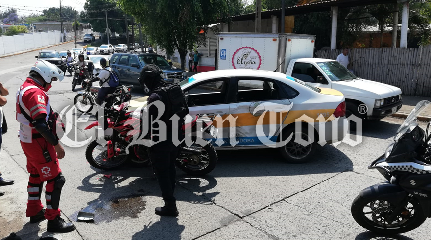 Córdoba.- Dos jovenes que viajaban en una motocicleta, resultaron lesionados al estrellarse contra el taxi 1295, cuyo conductor se les cruzó en la calle 9, frente al panteón municipal.