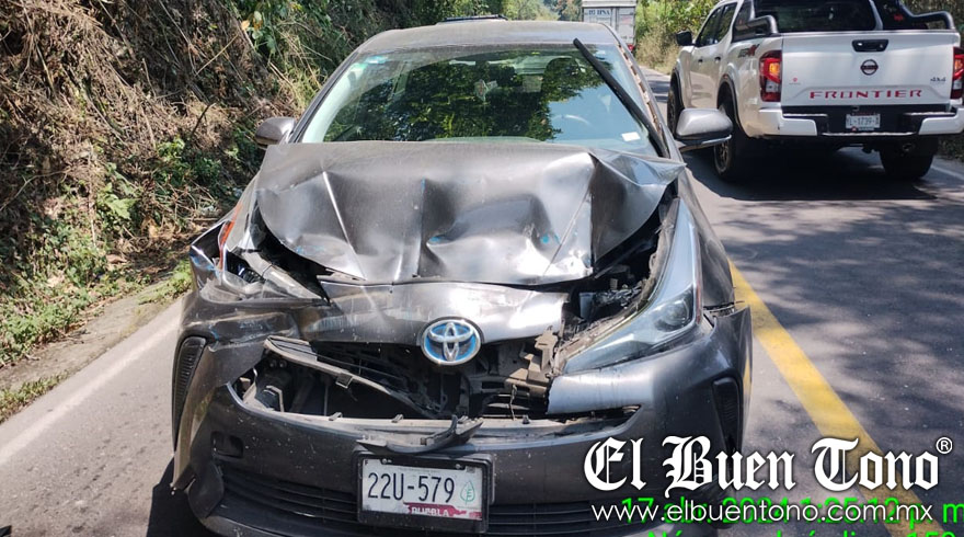 Debido a los daños en la parte del motor, el vehículo responsable quedó varado sobre el carril con dirección a Coscomatepec, pero el conductor salió ileso.
