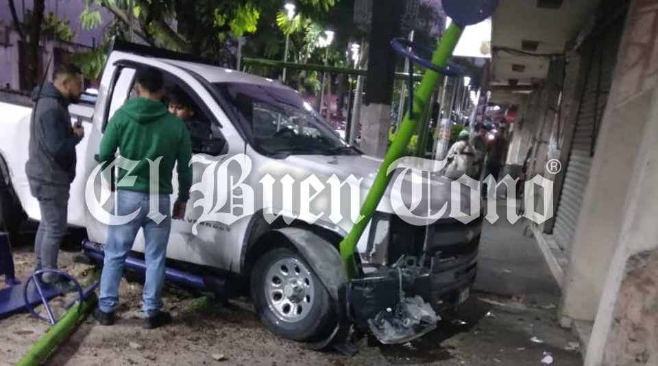 Córdoba, Ver.- Una camioneta Chevrolet chocó y derribó unas bancas metálicas, dañando un señalamiento, esta mañana de domingo en la avenida 11 entre calles 29 y 31, del barrio Las Estaciones, sin que se registraran personas lesionadas, sólo daños materiales.
