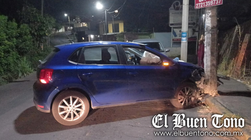 Córdoba.- El conductor de un vehículo Gol, terminó impactado contra un poste de concreto de la CFE, ya que durante la madrugada de ayer se accidentó al perder el control, debido a que presuntamente se quedó dormido al volante, al momento de circular sobre el camino que conduce a la colonia Santa Leticia, teniendo que intervenir las autoridades de Tránsito Municipal. El conductor resultó ileso, pero su unidad sí quedó dañada.
