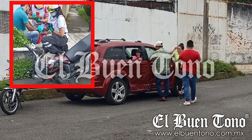 Córdoba. – Un motociclista fue atendido por paramédicos de la Cruz Roja, al resultar lesionado luego de chocar contra una camioneta, en la calle 25 y avenida 29 de la colonia Aguillón Guzmán.