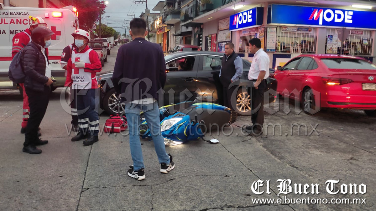 Córdoba,Ver.-un Motociclista resultó herido, la tarde de este martes luego de impactarse contra un vehículo Mazda el cual su conductora no respeto a la preferencia de paso, en la avenida 9 y calle 22 de la colonia San José.