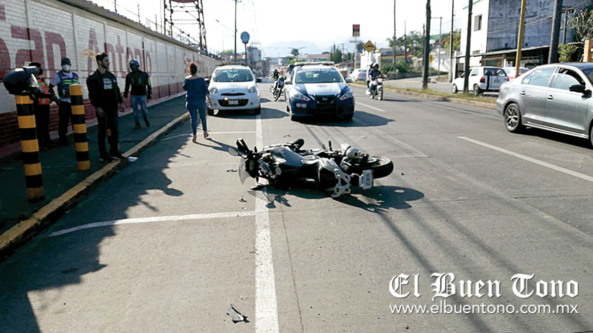 El percance ocurrió cuando el conductor de la X-Trail hizo corte de circulación, lo que provocó que el motorista chocara con la camioneta, cuando circulaba de Fortín hacia Córdoba.