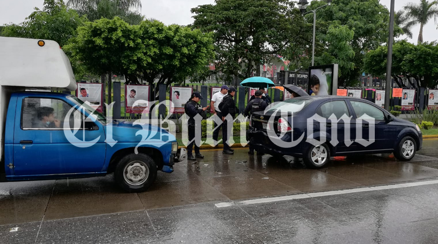 El percance se registró en la calle 8 y avenida 11, cuando el conductor de la camioneta Nissan no guardó la distancia correspondiente al llegar al semáforo el vehículo particular se detuvo, por lo que la camioneta se impactó en la parte posterior.
