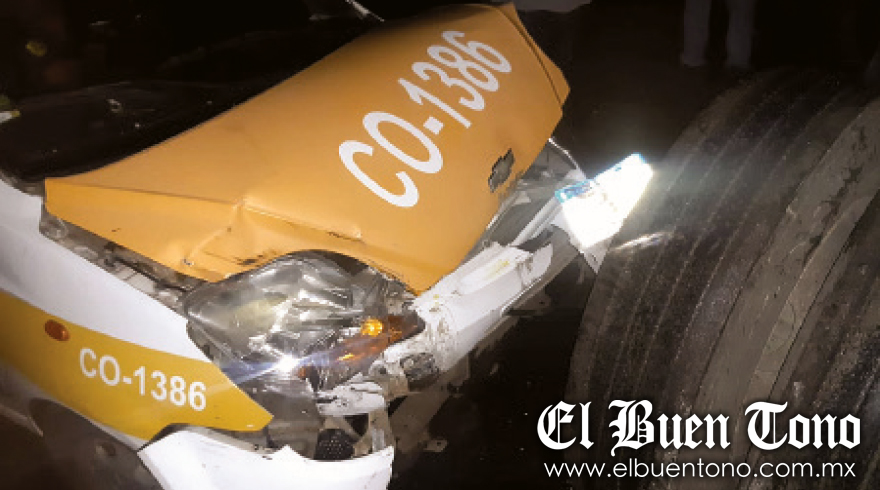 Córdoba.- El conductor del taxi marcado con el número CO-1386 sufrió un accidente, durante la madrugada de ayer viernes, luego de impactarse contra un tractocamión, al momento de circular sobre la autopista Veracruz-México, a la altura del kilómetro 297, en el Trébol de Amatlán.