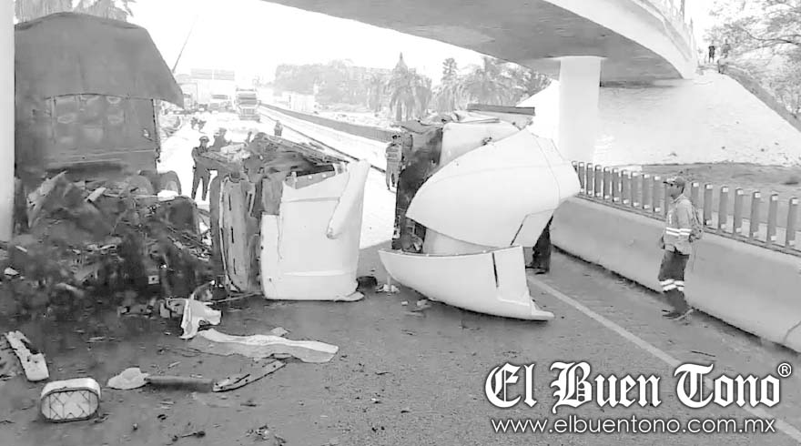 CIUDAD MENDOZA.- Un trailero se salvó de quedar prensado, al impactarse contra el muro del puente de Pemex, ubicado sobre la autopista Puebla-Orizaba.