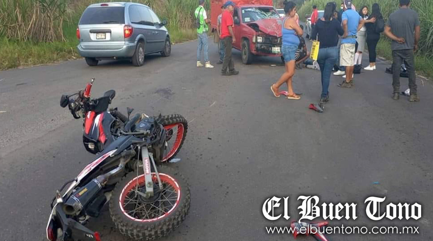 El percance se registró a la altura de la desviación hacia Presidio, cuando los dos cordobeses viajaban a bordo de una Italika DM, en la cual presumiblemente invadieron el carril de circulación, por lo que se impactaron contra la camioneta, motivo por el cual quedaron tendidos sobre la carpeta asfáltica.