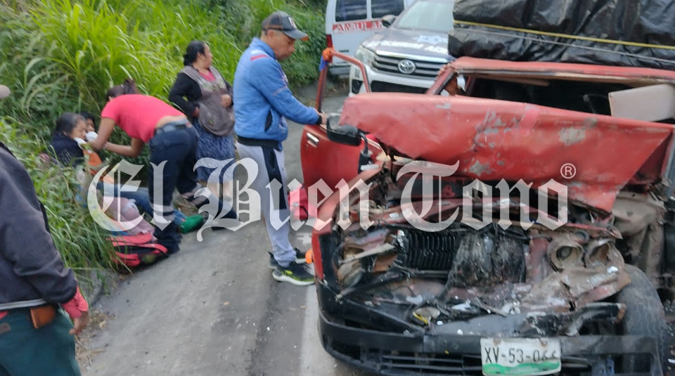 Coscomatepec.- Un choque frontal entre una camioneta de unos comerciantes del barrio de la Ocampo y un automóvil, dejó tres personas heridas y el cierre parcial de la circulación, sobre la carretera federal Coscomatepec-Huatusco, a la altura de la barranca del río Jamapa.