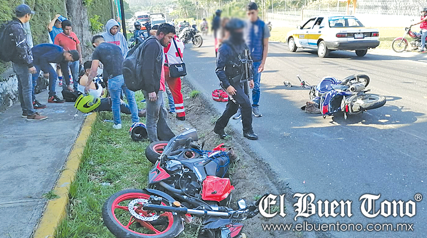 Córdoba.- El choque de dos motocicletas, ocurrido la mañana de ayer en el camino que va de la Finca Herrera hacia Los Cerezos, a la altura de la colonia Los Fresnos, dejó tres personas lesionadas.