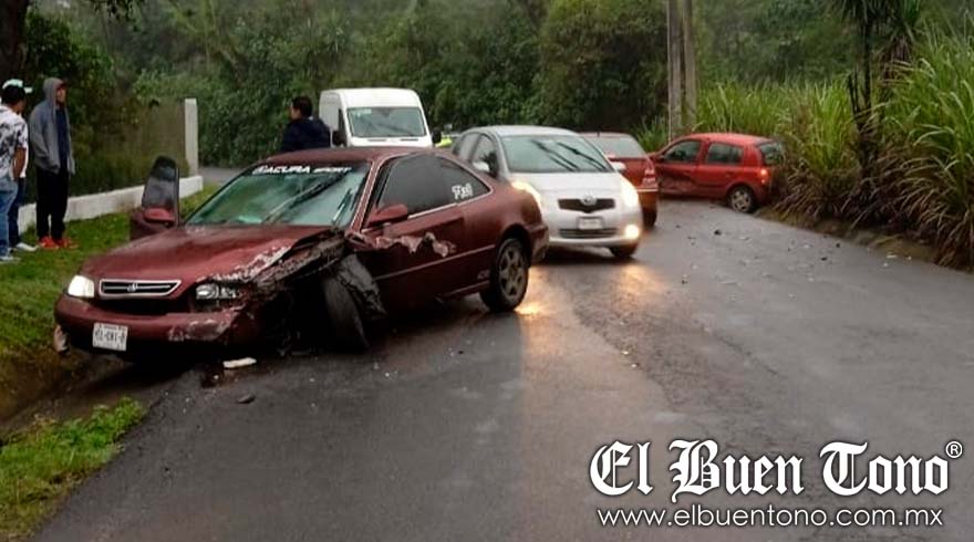 Presuntamente, el conductor de un automóvil rojo fue el responsable del accidente al invadir el carril contrario en una curva, mientras se dirigía hacia Chocamán.