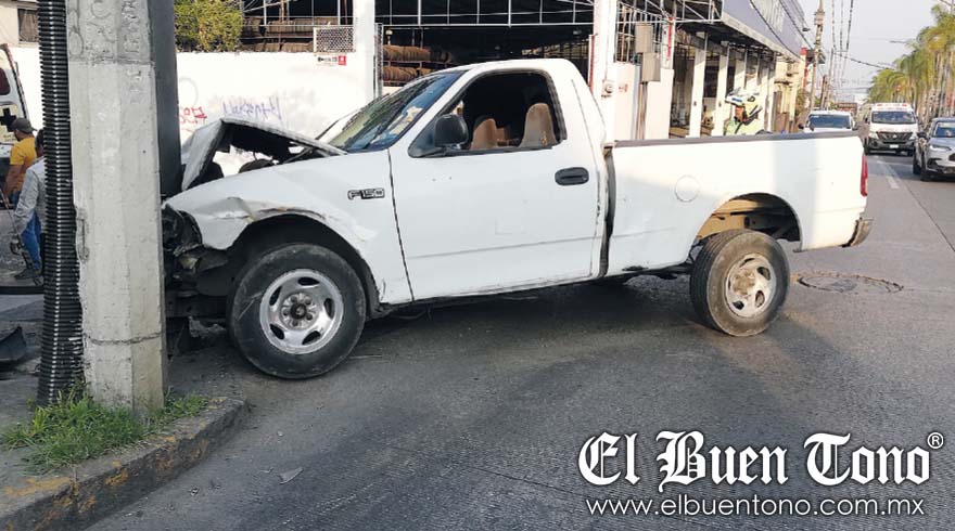 Al llegar a la esquina de la calle 18 fueron impactados por un automóvil color rojo, lo que provocó que el conductor de la camioneta perdiera el control y se estrellara contra un semáforo.