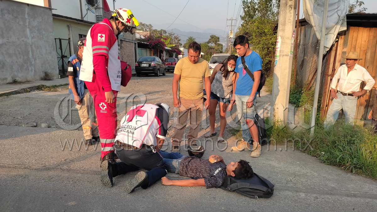 Córdoba,Ver. Dos jóvenes de los cuales uno es menor de edad, los cuales viajaban abordo de una motocicleta  sobre la carretera  Camino Real ,  resultaron lesiones graves  luego de que se chocaran contra un vehículo el cual salió sin precaución para incorporarse a la carretera.