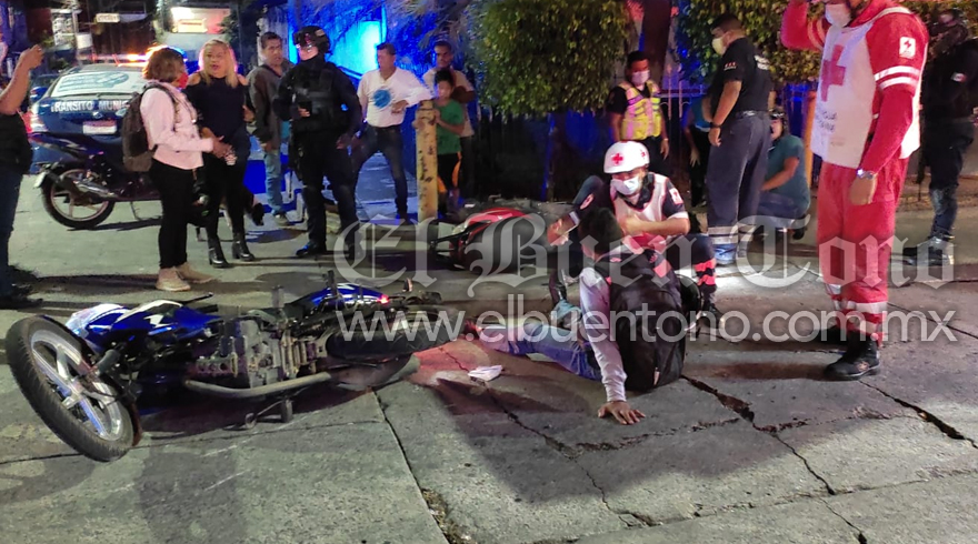 Córdoba.- Dos jóvenes que viajaban a bordo de su motocicleta resultaron con lesiones luego de colisionar en la avenida 5 y calle 41 de la colonia moderna. Al lugar arribaron paramédicos de Cruz Roja Quiénes los atendieron y los trasladaron a un hospital para su atención médica, de los hechos como conocimiento el perito en turno de Tránsito Municipal