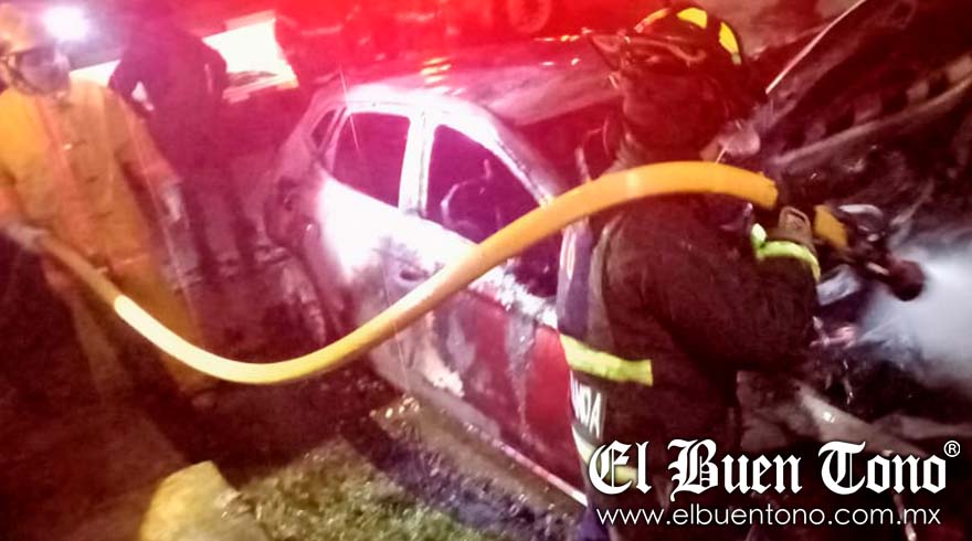 El incidente ocurrió alrededor de la 01:30 horas, cuando los propietarios se percataron de que el automóvil rojo modelo 2020, estaba ardiendo.