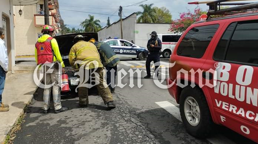 Fortín, Ver.- Un corto circuito provocó que un automóvil estuviera a punto de incendiarse, durante la mañana de este lunes en la calle 7 y avenida 3.