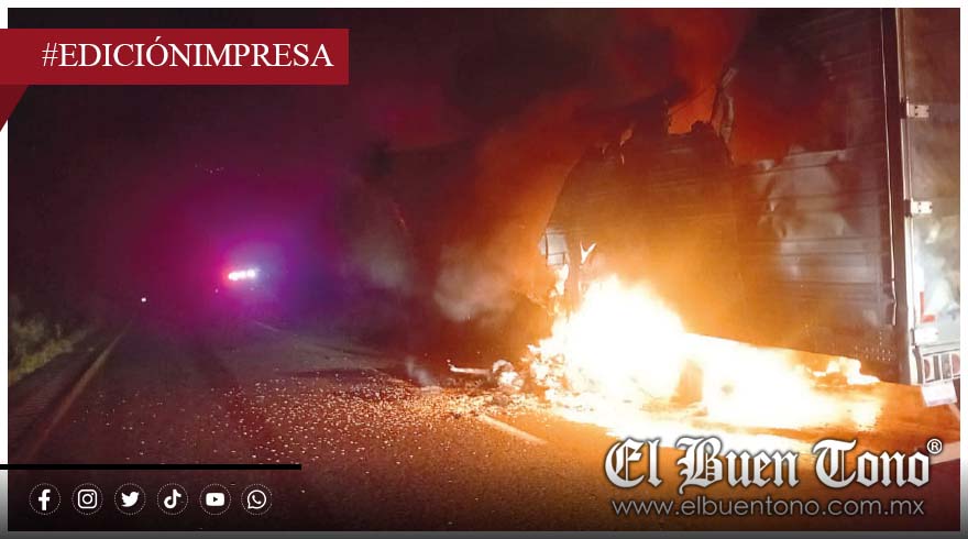 Maltrata.- Una caja seca remolcada por un tractocamión se incendió y fue consumida por el fuego durante la madrugada del viernes, en la autopista Puebla–Veracruz, a la altura del kilómetro 243, en la zona conocida como las Cumbres de Maltrata, debido al sobrecalentamiento en las balatas.