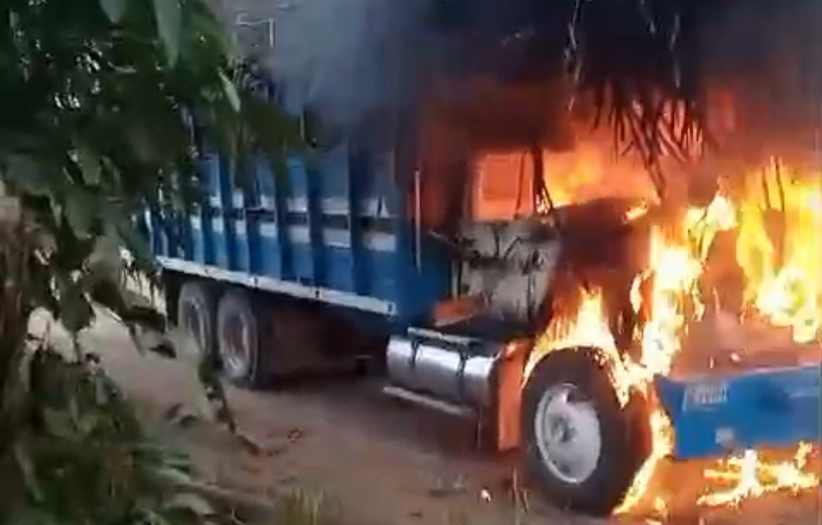Omealca.- Un camión cargado de caña que se dirigía al ingenio Providencia, se incendió la tarde de este miércoles al sufrir una falla mecánica en un camino de terracería.