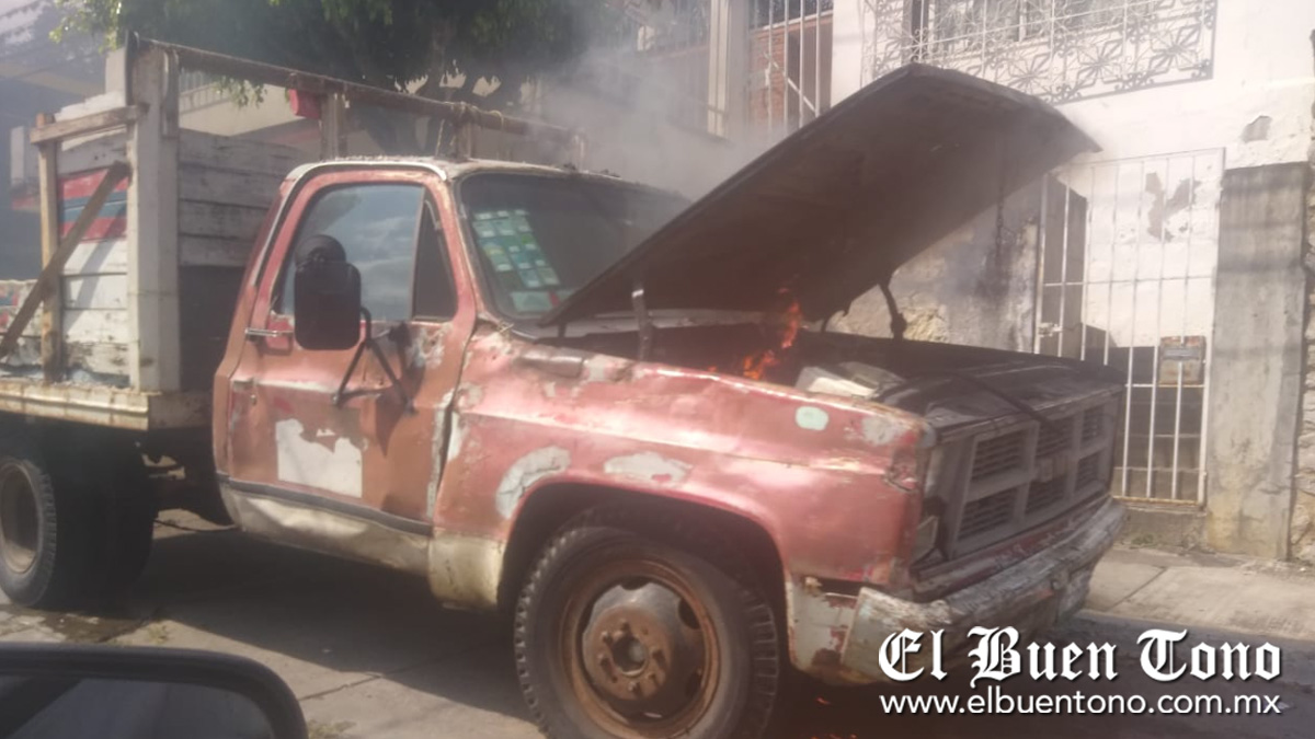 CÓRDOBA.- Una camioneta Chevrolet de redilas se incendió del motor presuntamente a causa de un cortocircuito, lo que provocó la movilización del personal de Bomberos, logrando controlar la situación en las inmediaciones de la avenida 21 y calle 9 en la colonia El Carmen.