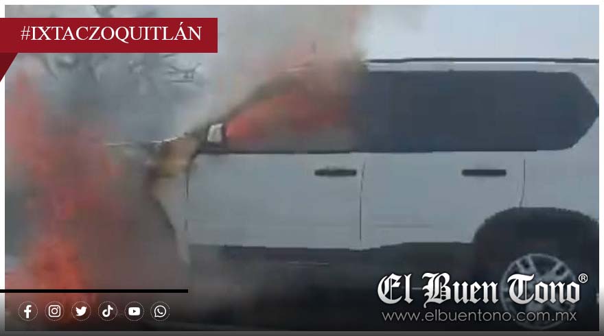 Ixtaczoquitlán, Ver – Una camioneta Nissan de lujo, se incendió ante un probable corto circuito, registrado este jueves a la altura del kilómetro