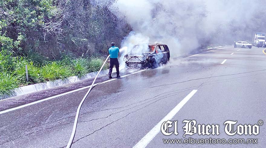 Durante este fuego que dejó a la camioneta como pérdida total, no hubo reporte de personas lesionadas, pero sí la formación de filas de vehículos por más de dos kilómetros.