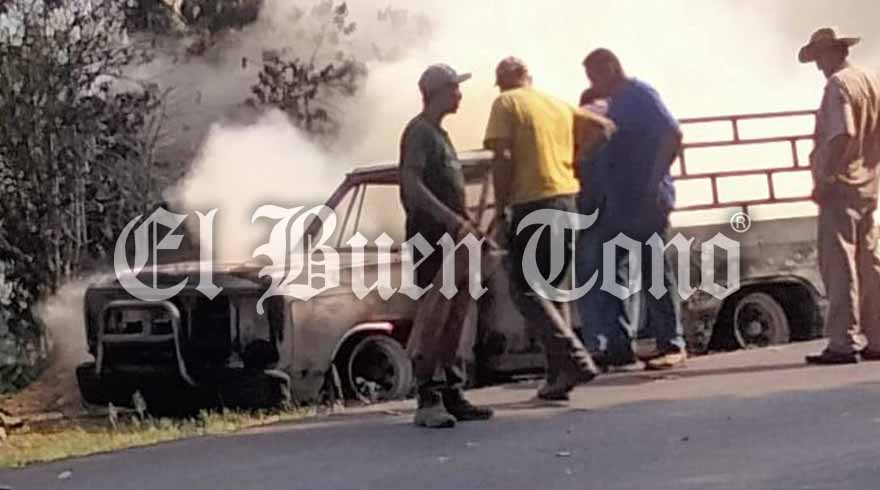 Pobladores apoyaron al propietario de la camioneta para apagar el fuego, sin embargo, la unidad quedó en perdida total.