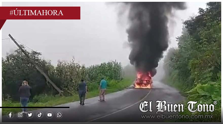 Calcahualco.- Un cortocircuito provocó que una camioneta Silverado se incendiara sobre la carretera estatal Calcahualco-Excola, a la altura de Los Encinos.